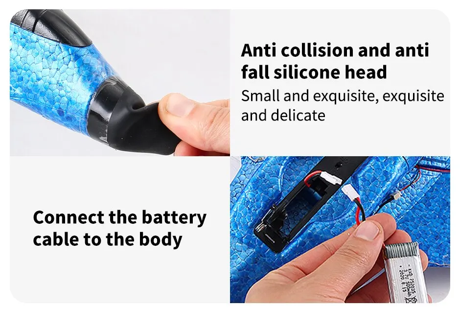 EPP material: very resistant to impact, flight weight of about 24g, rear-push dual-engine power, custom version of the brand big factory motor, stronger power, built-in 3-axis gyroscope flight self-stabilization system, flying more easily. The USB special charging cable with protection plate, safe and stable, fighter full assembly mode, to hand that fly.
