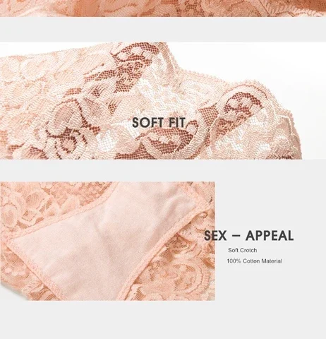 Material: 100% premium cotton | Lace: 10% nylon, 90% spandex | Mesh fabric: 20% nylon, 80% spandex